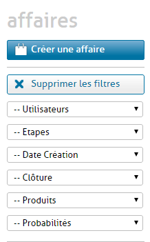 Vous pouvez désormais filtrer vos affaires avec vos champs personnalisés (menus déroulants). Les filtres déjà présents sont :