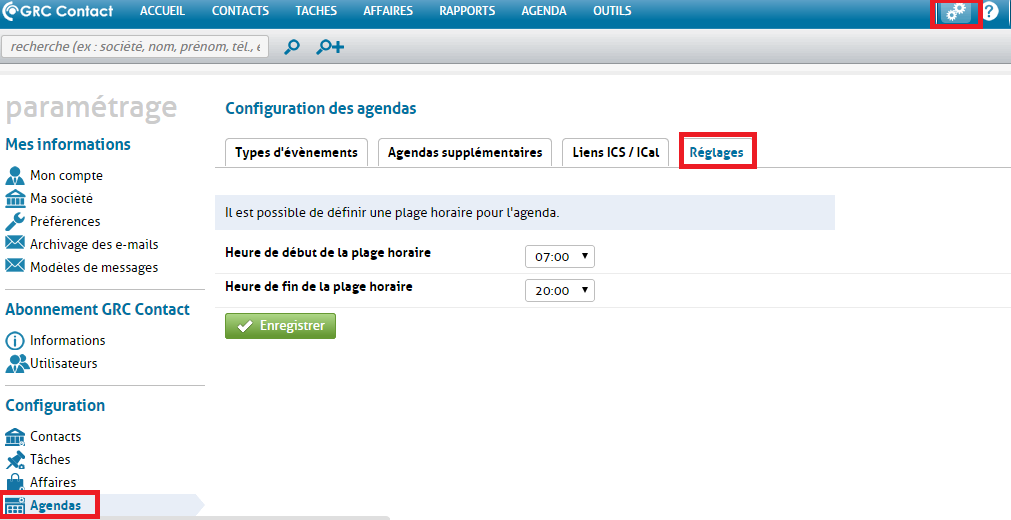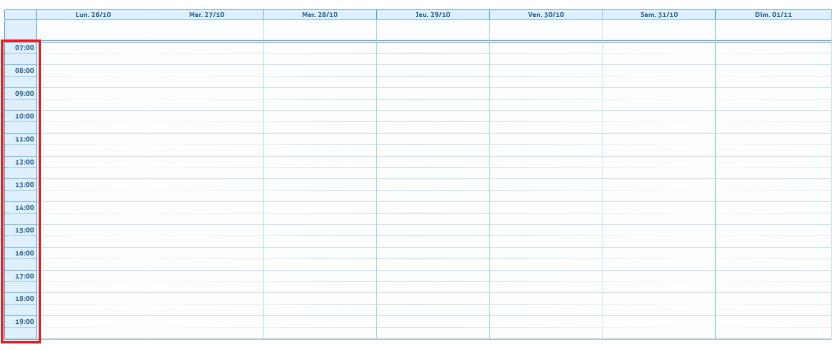 Vous pouvez désormais choisir l’heure minimum et l’heure maximum que doit afficher votre agenda. Cela vous évite d’avoir un aperçu de minuit à minuit. Nous l’avons programmé par défaut sur la plage horaire 7h-20h. Vous pouvez modifier celle-ci en allant dans « paramètres », « Agendas » puis « réglages ».