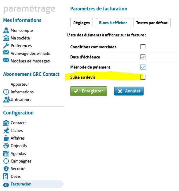 Vous disposez de nouveaux paramètres pour personnaliser vos factures :