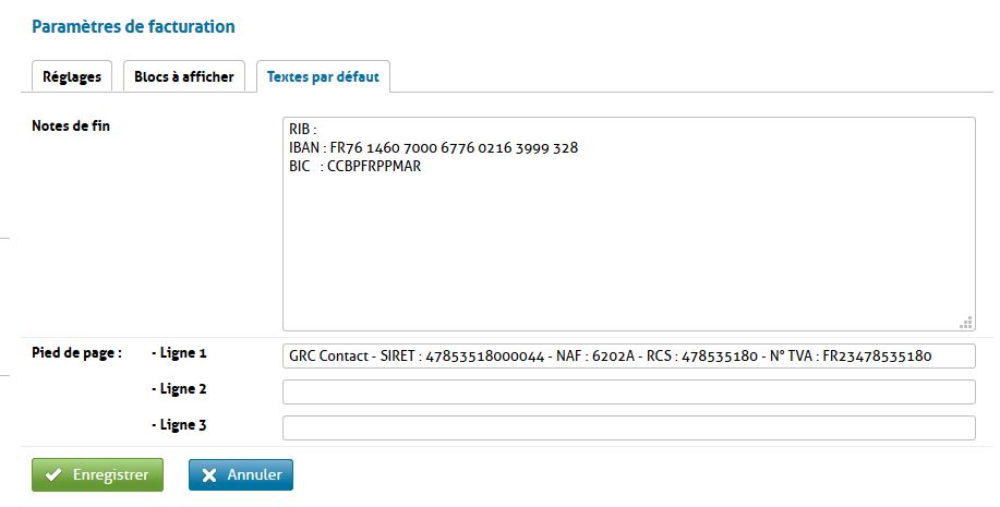 - Possibilité d’avoir une 3ème ligne dans le pied de page des factures