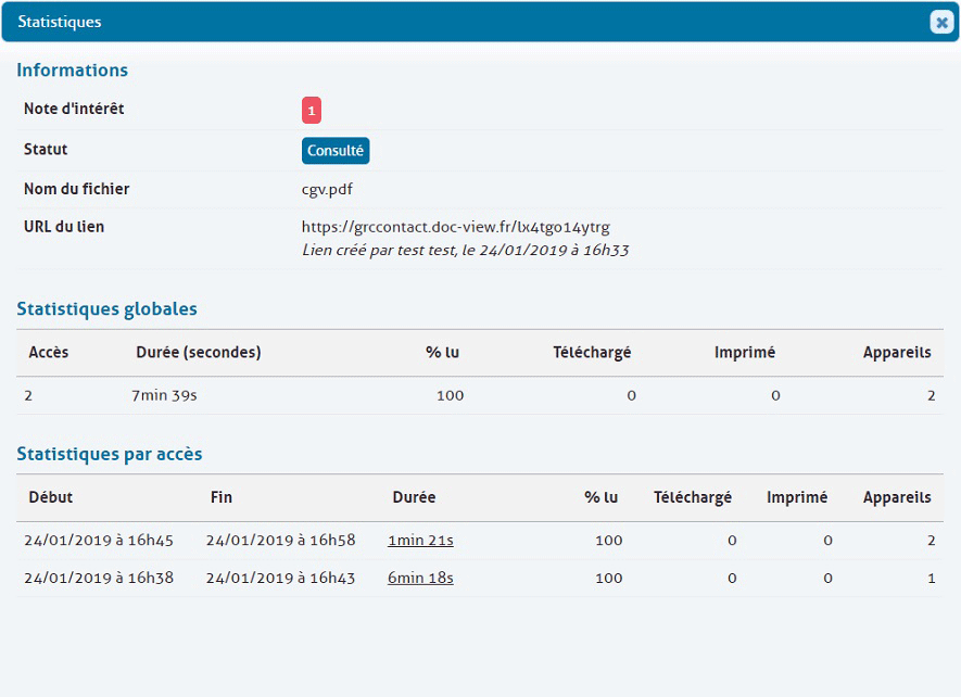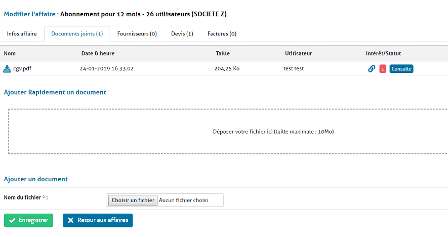 Il suffit tout simplement d’enregistrer votre document dans les documents joints de votre affaire pour générer un lien de tracking.
